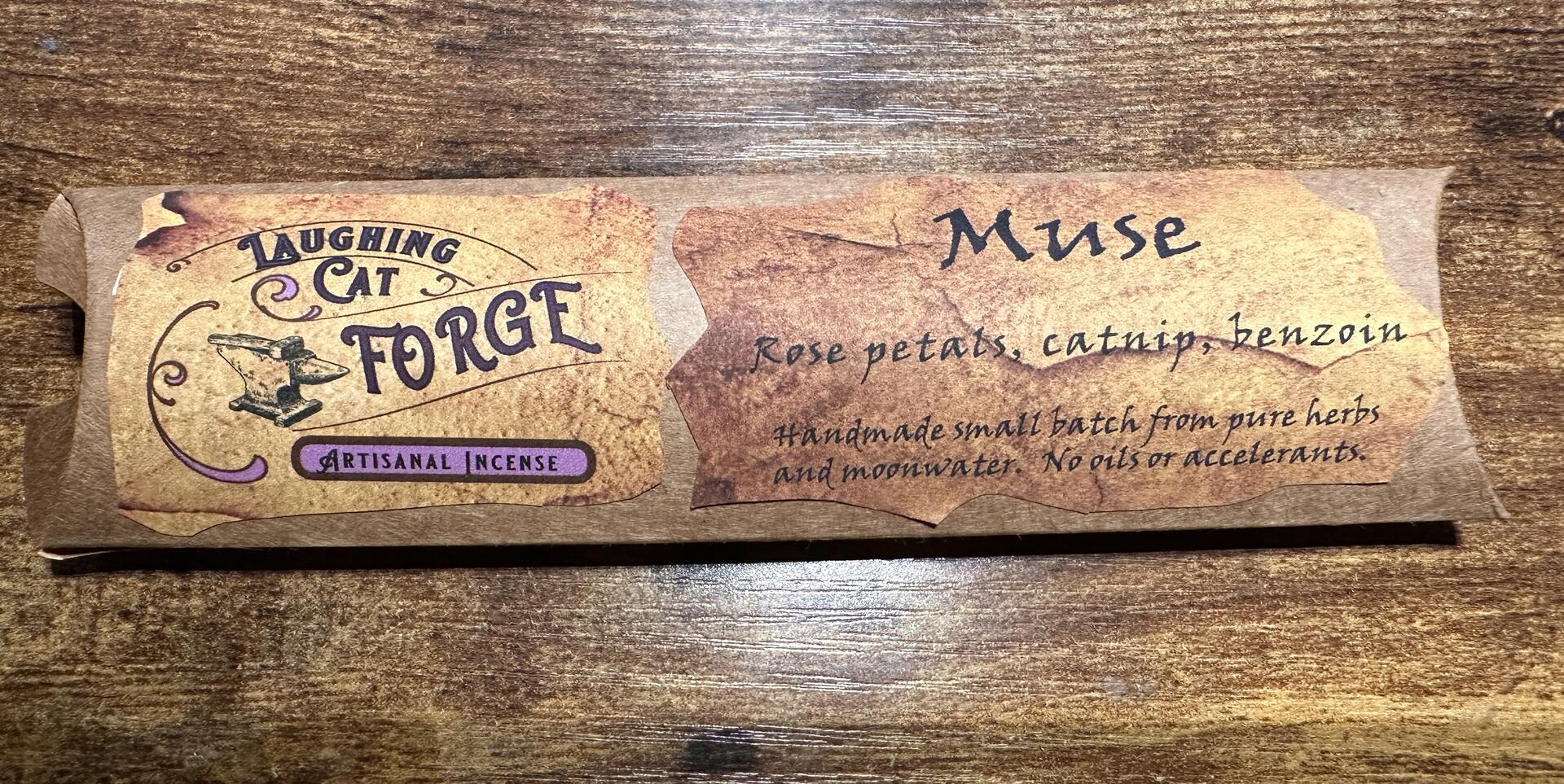 For those times when you just cannot seem to find your muse....attract them with this incense! Ground rose petals, catnip, and powdered benzoin are mixed with makko and moonwater then extruded Japanese-style...meaning, every piece of incense is solid incense with no mystery wood inside. Herbs are selected to boost creativity.